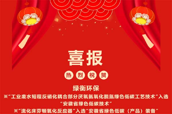 跨年喜報 | 綠衡環保兩款核心產品技術入選“安徽省綠色低碳(...