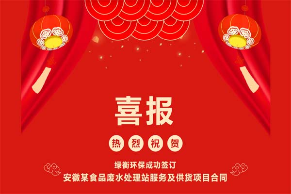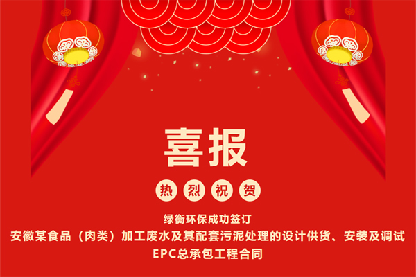 熱烈祝賀綠衡環保成功簽訂安徽某食品(肉類)加工廢水及其配套污...